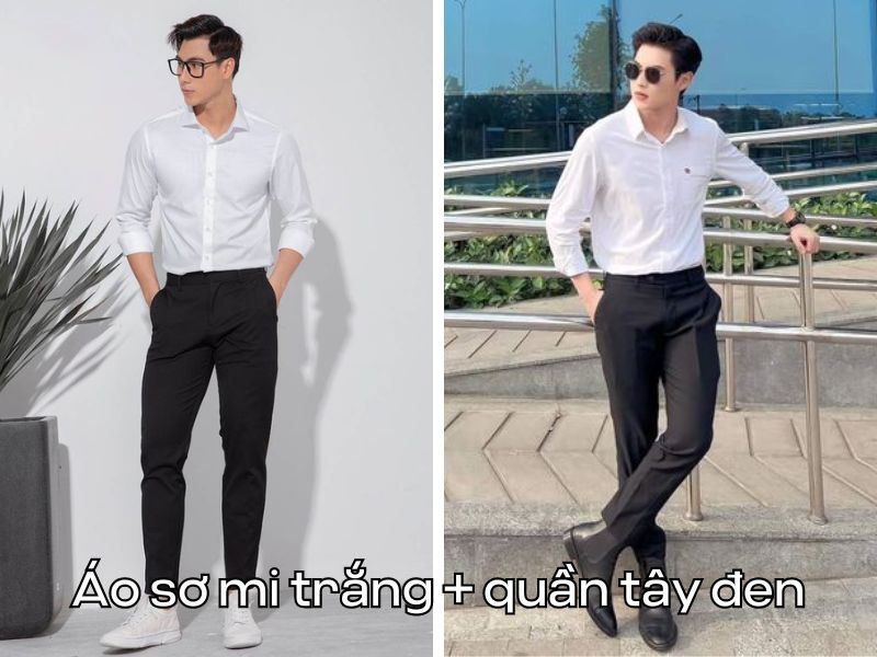 Áo sơ mi trắng + quần tây đen nam