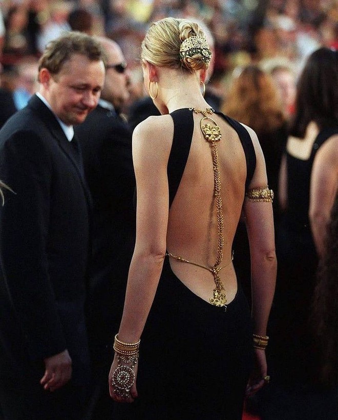 Nữ diễn viên Cate Blanchett còn thể hiện đẳng cấp cùng gu thời trang tinh tế khi khéo léo mix&match phụ kiện vòng tay, vòng cổ hài hoà với điểm nhấn dây nối phía sau bằng vàng tinh xảo của váy. Tất cả tạo ra khoảnh khắc xuất hiện đẹp kinh diễm, ghi điểm trong lòng người hâm mộ hai lĩnh vực thời trang và phim ảnh mãi nhiều năm về sau.