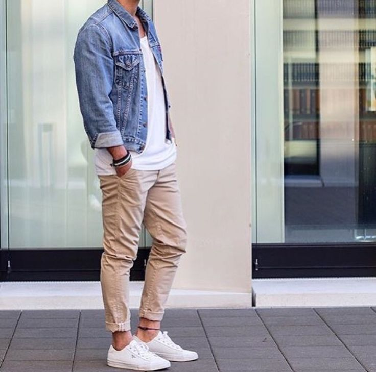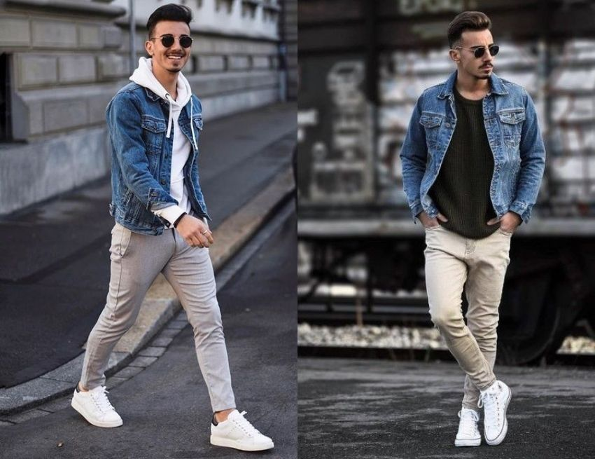 1. Áo khoác jeans nam với quần chinos