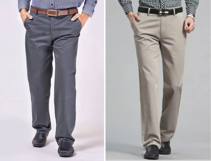 Quần kaki nam chắc chắn là mẫu trang phục nam trung niên cần phải có trong tủ quần áo của mình. Khác với loại quần kaki dành cho người trẻ, ở độ tuổi trung niên, item này được thiết kế với dáng ống đứng đặc trưng, giúp tạo hiệu ứng thon gọn cho cơ thể.
