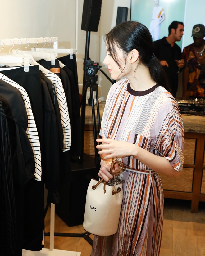 Mẫu váy họa tiết trên đây rất nổi bật nhưng cũng có sự sang trọng, tinh tế. Jung Eun Chae còn gợi ý cho chị em kiểu tóc lý tưởng để áp dụng khi diện váy họa tiết, đó là tóc buộc thấp bay bổng, dịu dàng.
