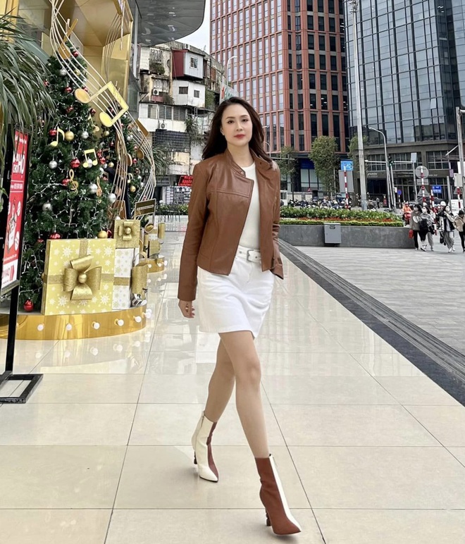 Áo khoác da là món thời trang được Hồng Diễm rất yêu thích. Mẫu áo khoác này ghi điểm ở nét bụi bặm và trẻ trung, không bao giờ lỗi mốt. Dù mang các tông màu trung tính như nâu hay đen làm chủ đạo, áo khoác da vẫn mang đến hiệu quả "hack" tuổi.