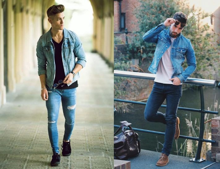 Áo khoác denim với skinny jeans: Phối đồ với quần jeans skinny với áo khoác denim là phong cách tone sur tone được nhiều tín đồ yêu thích. Đối với những chàng trai theo đuổi phong cách street style thì đây chính là lựa chọn hoàn hảo nhất hiện nay.