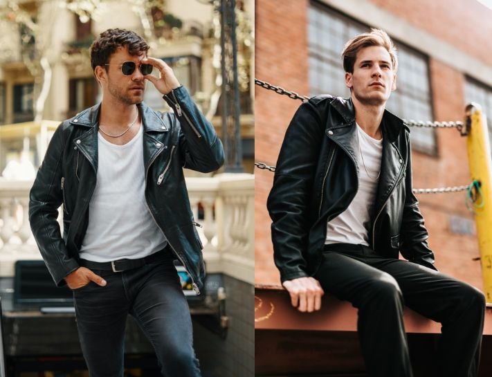 Áo khoác da: Yêu thích phong cách cool ngầu như một quý ông thì bạn đừng bỏ qua sự kết hợp với áo khoác da. Đây là style phù hợp để sử dụng khi đi chơi, đi hẹn hò hoặc tham gia những bữa tiệc,.. giúp bạn trở nên nổi bật hơn.