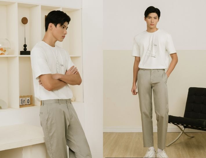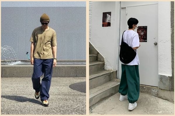 Phối áo thun oversize + quần kaki theo phong cách normcore