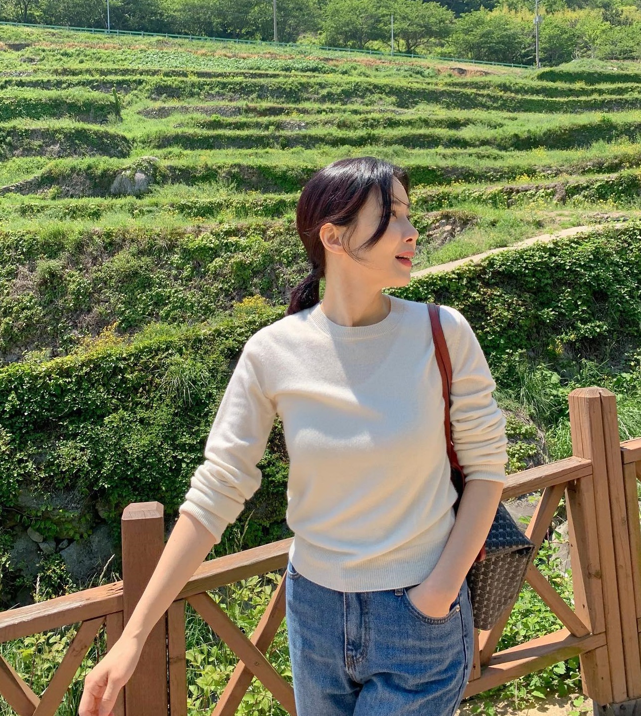 Áo thun trắng và quần jeans là công thức phù hợp với mọi độ tuổi. Cách phối đồ này đã giúp Lee Bo Young có được vẻ ngoài trẻ trung, năng động nhưng vẫn trang nhã. Để vẻ ngoài thêm ấn tượng, quý cô trên 40 tuổi có thể tô điểm một số món phụ kiện như vòng cổ ngọc trai, dây chuyền vàng hoặc khuyên tai tròn…