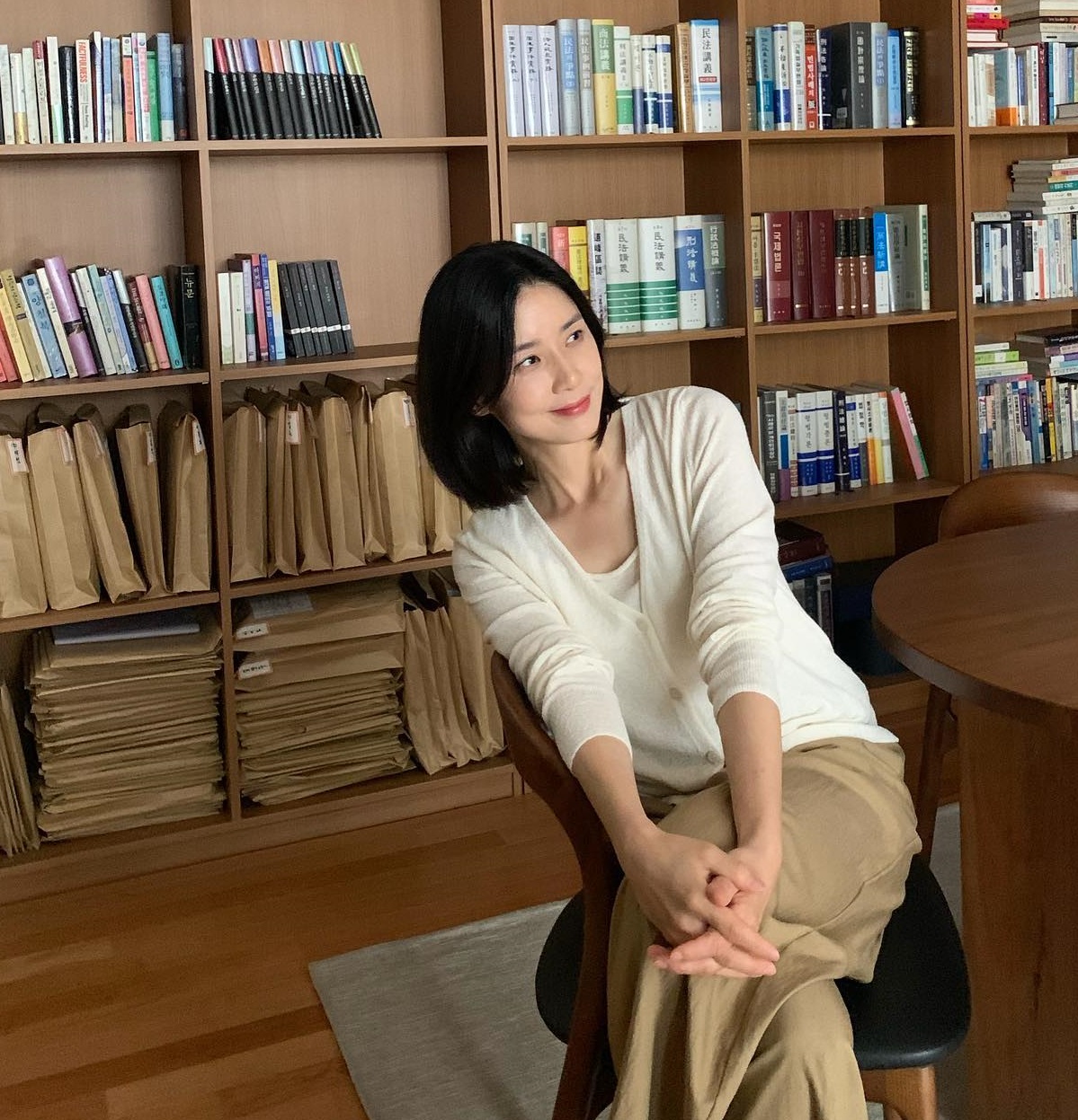 Muốn mặc đẹp trong tích tắc, các quý cô trên 40 tuổi hãy tham khảo công thức gồm áo mỏng kết hợp với cardigan đồng bộ và quần ống suông của Lee Bo Young. Nhờ tông màu trắng và be làm chủ đạo, bộ trang phục không chỉ trẻ trung mà còn ghi điểm tinh tế, trang nhã.