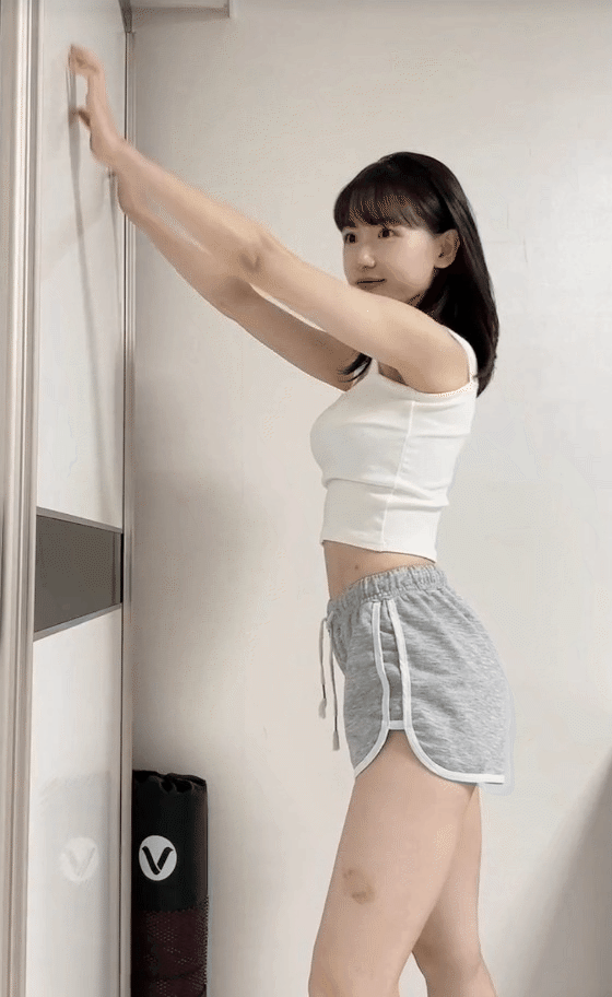 Một trong những tư thế tĩnh được phụ nữ Nhật thực hiện hàng ngày, chính là động tác uốn lưng áp người sát tường. Chỉ một động tác đơn giản nhưng vóc dáng của bạn lại có thể thon gọn, cân đối như ý muốn; đặc biệt duy trì tập luyện động tác này khoảng 5 phút/ngày bạn sẽ có được tấm lưng thon gọn, bờ vai mềm mại và vòng 2 săn chắc cân đối hơn mà không phải vất vả tập luyện quá gắt gao.