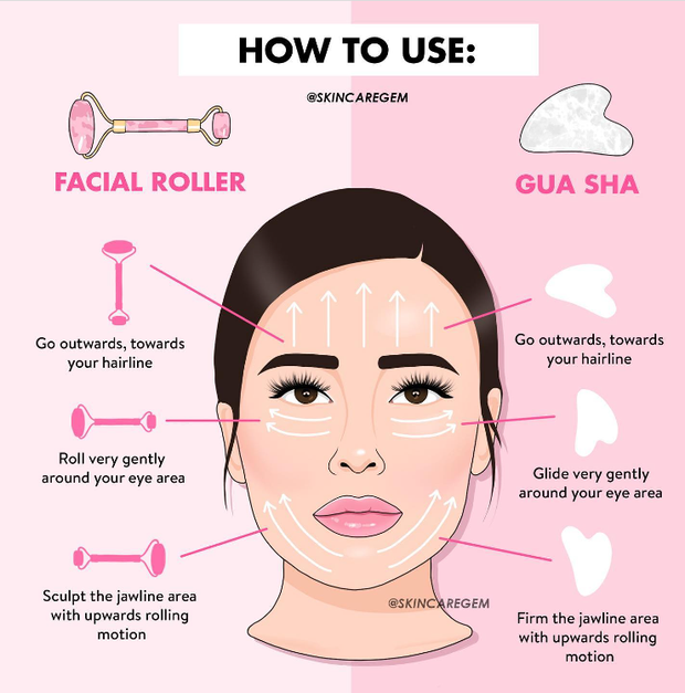 Sau khi thoa serum và kem dưỡng lên toàn bộ khuôn mặt, Ishii Miho sẽ dùng con lăn và đá Guasha để di lên mặt. Đây là một thao tác massage giúp cải thiện tuần hoàn máu, kích thích tính đàn hồi của da, từ đó cải thiện những vấn đề lão hóa như da chảy xệ, nếp nhăn, da sần sùi... giúp bạn lấy lại độ tươi trẻ cho làn da của mình. Đừng quên massage cả phần cổ để giảm nếp nhăn tuổi tác cho vùng da này. Ishii Miho sẽ thực hiện bước massage này trong 10 - 15 phút.