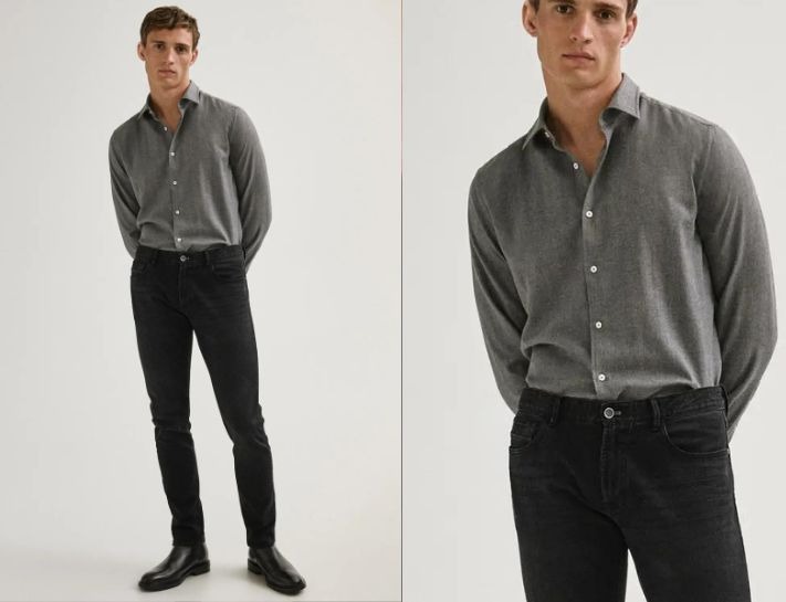 Phối quần jeans đen với áo sơ mi: Dây là cách phối đồ cơ bản mà bất cứ chàng trai nào cũng biết. Nam giới thường lựa chọn áo sơ mi trắng để tạo nét tương phản cho bộ trang phục. Về cơ bản set đồ này có đủ lịch sự, thoải mái, nét nam tính và mạnh mẽ, do đó bạn có thể dùng chúng vào bất cứ trường hợp nào.