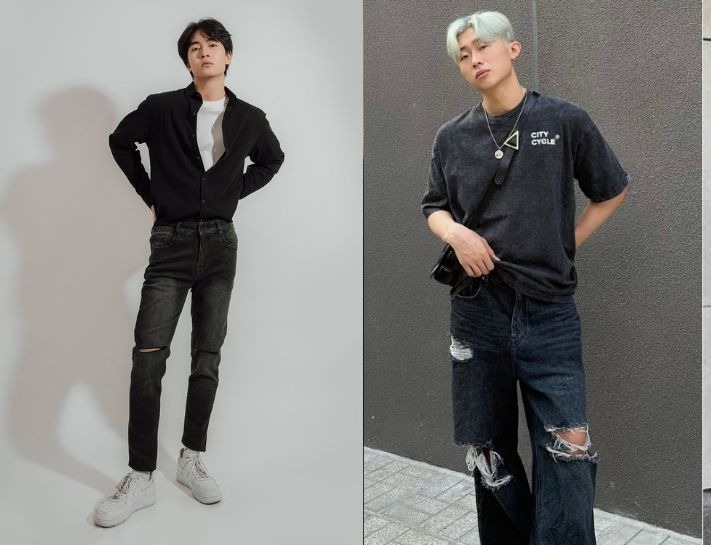 Phối đồ với quần jeans đen nam rách