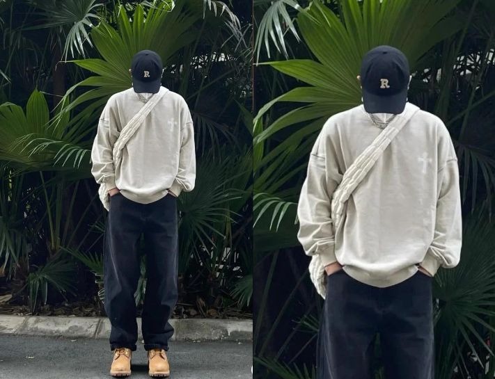 Phối quần jeans đen nam ống rộng với áo oversize: Những mẫu áo oversize chính là mảnh ghép hoàn hảo cho quần jeans đen nam ống rộng. Nên chọn những dáng áo có màu sắc đơn giản, tương phản với item quần đồng thời phối thêm những mẫu giày phù hợp với phong cách cá nhân. Như vậy có thể tạo ra một outfit có gu hơn rất nhiều.