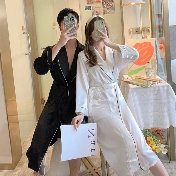 Đồ ngủ kimono được cách điệu theo trang phục kimono truyền thống của Nhật Bản. Loại đồ ngủ này khác so với pijama ở phần áo tà chéo, có dây buộc.