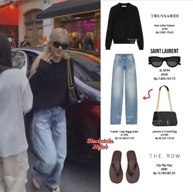 Đi xem Lisa diễn ở Crazy Horse hay dạo chơi đường phố Paris, Rosé diện outfit tối giản nhưng không kém phần thời thượng với áo sweater dài tay phối cùng quần jeans và dép xỏ ngón