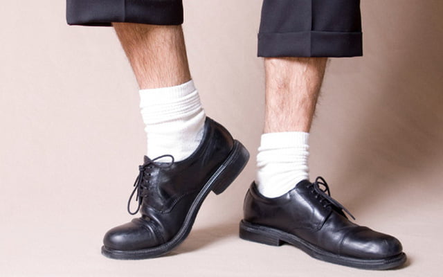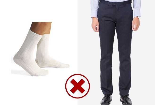Vớ trắng là phụ kiện được bán rất nhiều trên thị trường vì đây là gam màu dễ sử dụng nhất. Tuy nhiên, khi kết hợp với quần tây nam công sở, chúng lại không làm phái mạnh trở nên lịch lãm hơn. Bởi đa phần nam giới thường mặc quần tây nam công sở có gam màu tối, trầm. Trong khi đó mặc với vớ trắng sẽ làm bộ trang phục trở nên lệch tông.