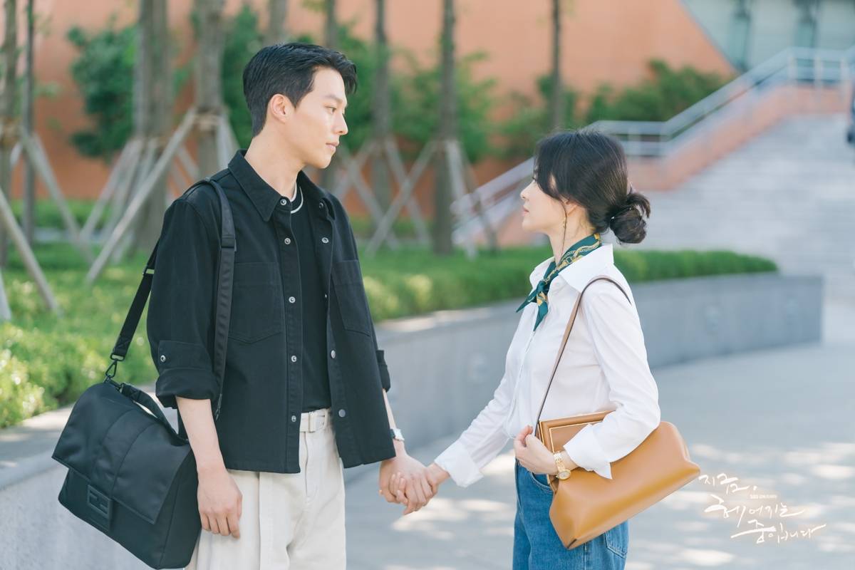Quần jeans ống rộng đang là kiểu quần siêu "hot" trong mùa hè. Và Song Hye Kyo đã nắm bắt kịp thời xu hướng này với công thức trang phục gồm áo sơ mi trắng, quần jeans xanh. Combo trang phục của Song Hye Kyo mang đến hiệu quả "hack" tuổi và còn ghi điểm tinh tế, trang nhã.