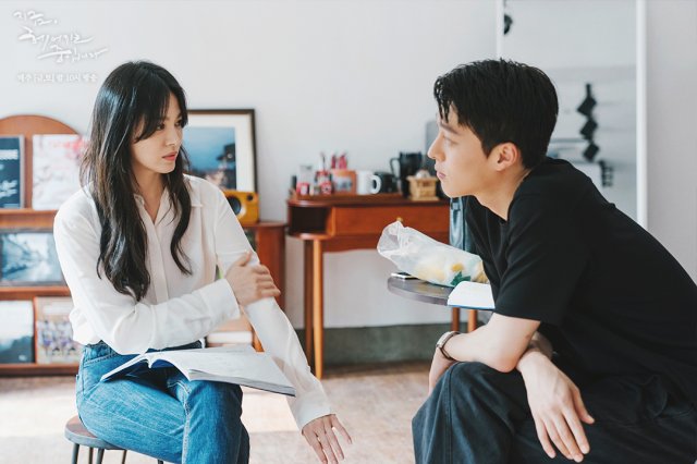 Áo sơ mi trắng và quần jeans xanh rất dễ áp dụng, cứ mặc là đẹp. Ngay cả khi không cần tô điểm phụ kiện cầu kỳ, vẻ ngoài của chị em vẫn sẽ tỏa sáng với sự trẻ trung, sành điệu. Nhờ áp dụng kiểu tóc xõa uốn sóng nhẹ khi diện áo sơ mi trắng và quần jeans xanh, Song Hye Kyo ghi điểm ở sự dịu dàng, thanh lịch.