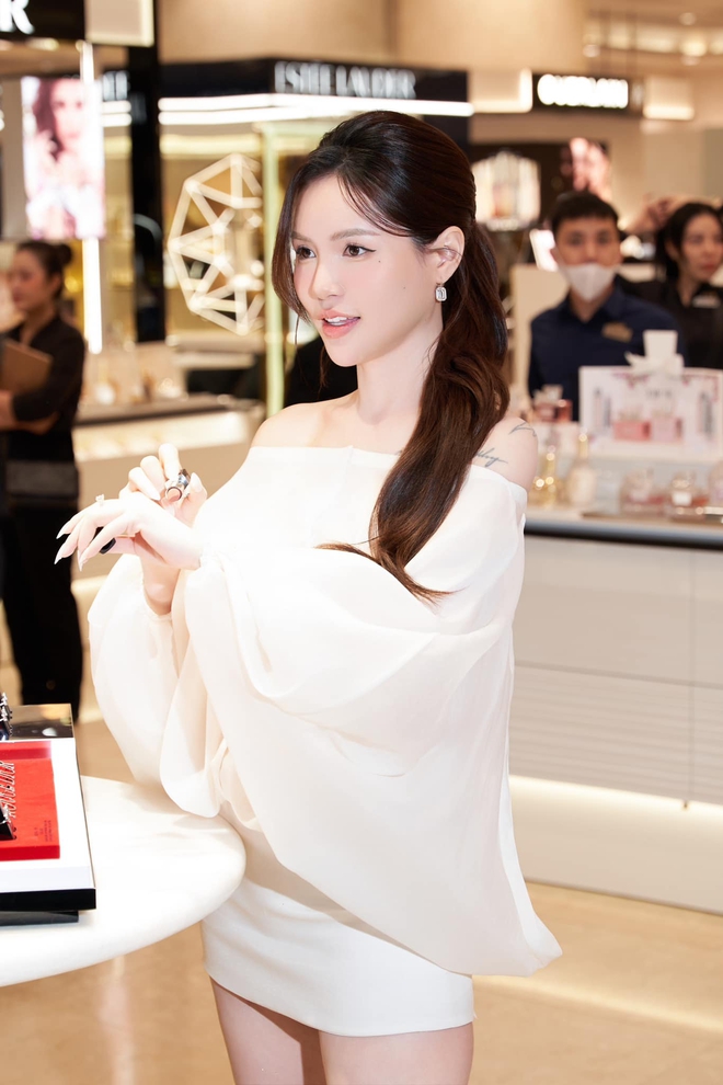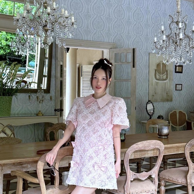 Lucie Nguyễn, không chỉ sở hữu nhan sắc xinh đẹp mà còn có gu thời trang không thể rời mắt. Điểm nhấn trong phong cách của cô nàng chính là những chiếc váy nữ tính, được thiết kế với đường cắt may tinh tế, tôn lên vóc dáng thon gọn của cô nàng. Những chi tiết bèo nhún, hoa văn nhẹ nhàng được sử dụng khéo léo, tạo nên sự mềm mại, uyển chuyển cho từng bộ trang phục.