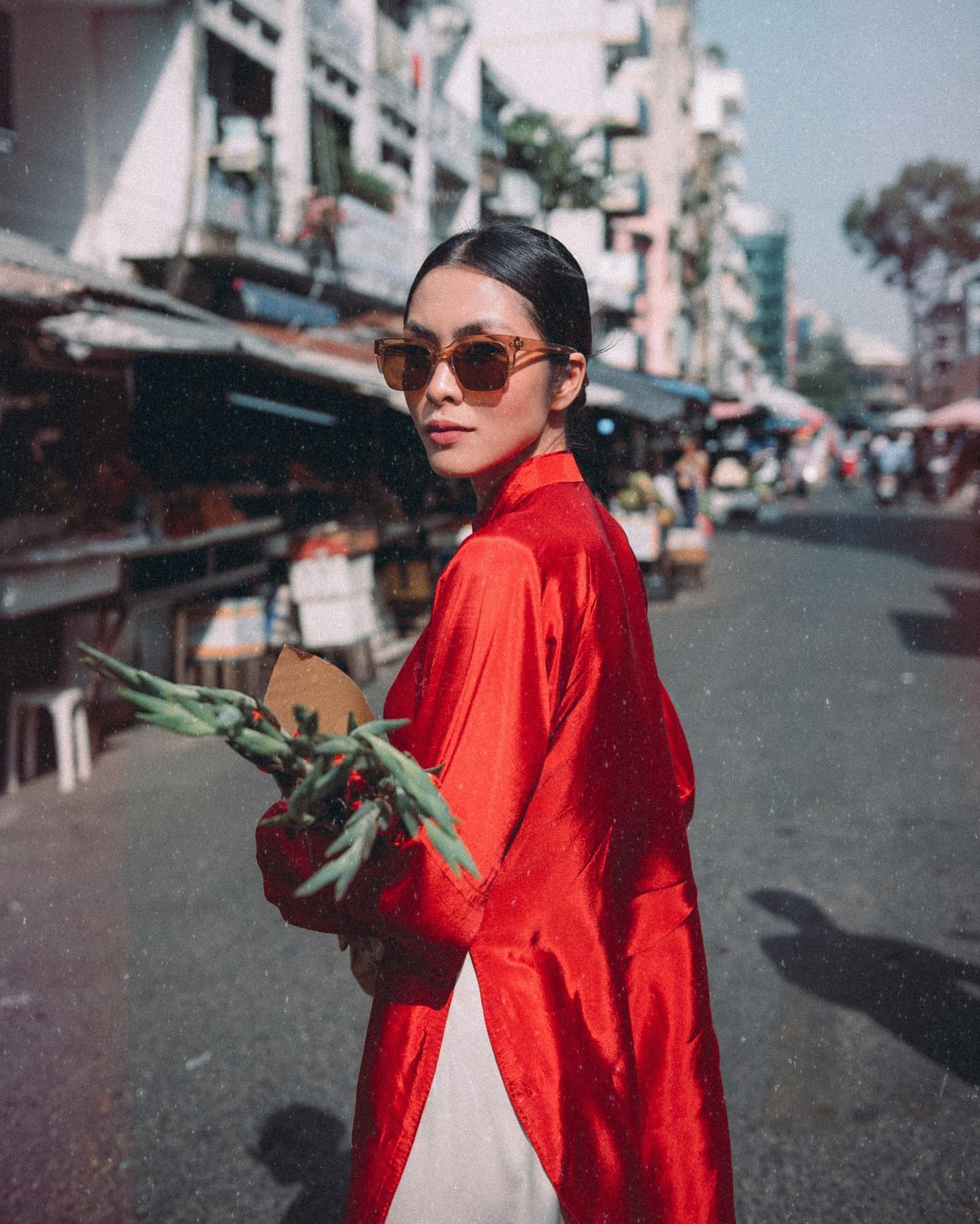 Ngoài ra, người đẹp sinh năm 1986 thường xuyên lựa chọn những mẫu áo dài có gam màu nổi bật và tươi sáng. Các gam màu thường thấy trong "bộ sưu tập" áo dài của Tăng Thanh Hà là màu đỏ, vàng, hồng, xanh cổ vịt... Bên cạnh đó, cô còn có thói quen đeo kính râm khi diện áo dài, tạo điểm nhấn vô cùng "cool" và thời thượng cho tạo hình nền nã, truyền thống.