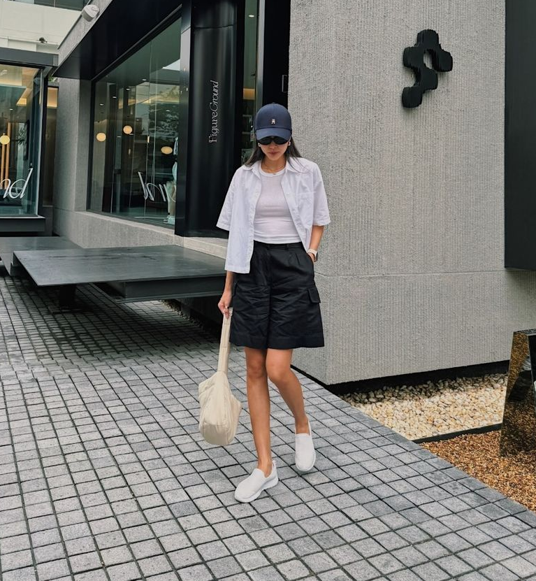 Xoay quanh combo áo thun trắng và quần short, Tăng Thanh Hà cũng có nhiều cách biến tấu để vẻ ngoài luôn mới mẻ, không nhàm chán. Cụ thể, cô thường khoác ngoài áo thun trắng một chiếc sơ mi đồng màu hoặc sơ mi họa tiết để tạo vẻ phóng khoáng. Chưa hết, Tăng Thanh Hà còn tô điểm mũ lưỡi trai hoặc mũ cói, từ đó vẻ ngoài trông nổi bật hơn.