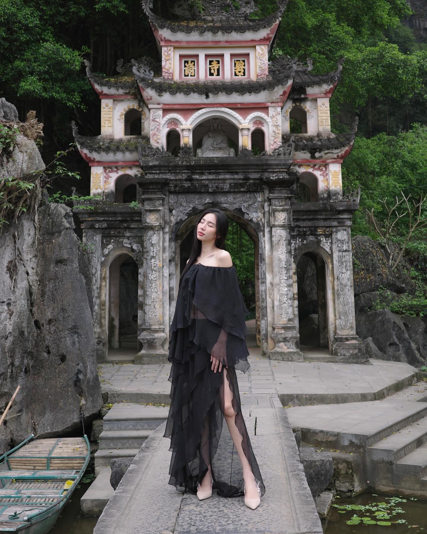 Diện váy màu đen, Thùy Tiên không bị cộng tuổi mà vẫn đầy nữ tính, bay bổng. Mẫu váy này lên hình cũng rất hút mắt. Thay vì chọn giày cao gót mũi nhọn, chị em có thể ưu tiên những thiết kế thoải mái hơn là sandal, giày mule.