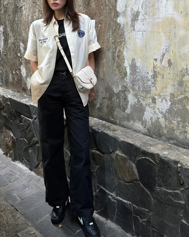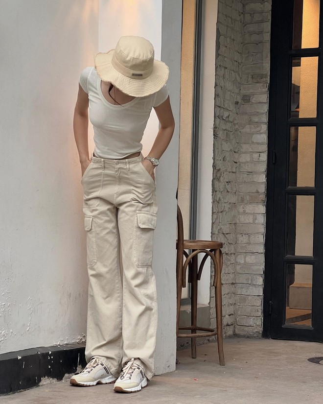 Áo thun trắng và quần màu be là sự kết hợp không bao giờ sai. Công thức này không chỉ toát lên nét trẻ trung, năng động mà còn ghi điểm tinh tế, ai cũng có thể mặc đẹp. Đôi sneaker trắng là mảnh ghép phù hợp với bộ đồ mang tông màu trung tính làm chủ đạo.