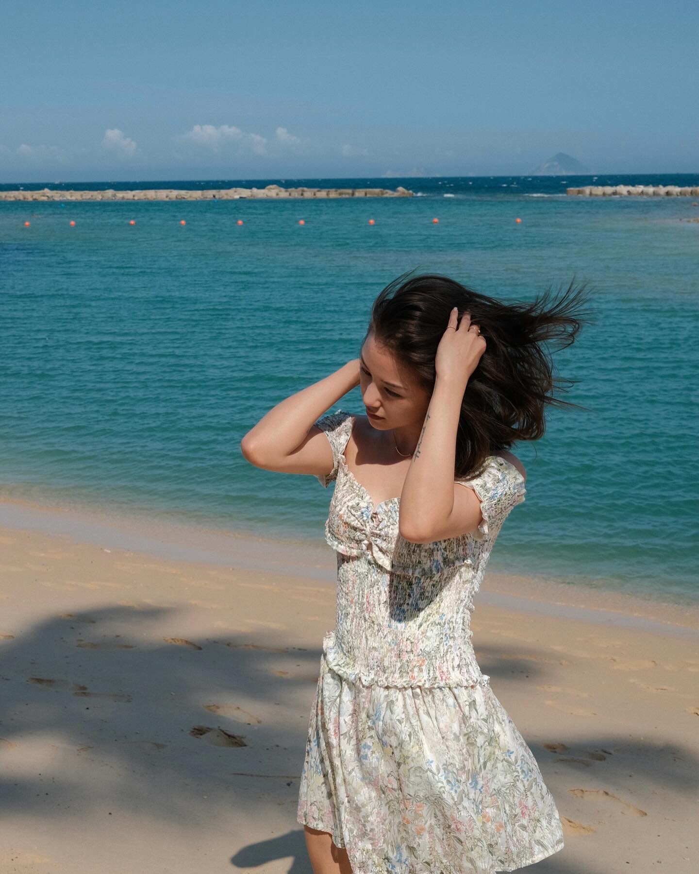 Bên cạnh những thiết kế váy dài, chị em đừng bỏ qua váy ngắn khi hoàn thiện style đi du lịch. Salim đã khéo léo chọn thiết kế váy ngắn, phủ họa tiết hoa nhí. Mẫu váy này mang đến cho Salim nét trẻ trung, ngọt ngào nhưng vẫn rất tinh tế.