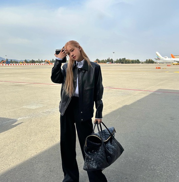 Chị em không nên bỏ qua áo khoác da khi xây dựng phong cách mùa lạnh. Mẫu áo này bụi bặm và cá tính, giúp vẻ ngoài trở nên nổi bật. Rosé đã cân bằng bộ trang phục với áo sơ mi trắng và quần đen. Nhờ vậy, tổng thể trang phục của Rosé vừa thời thượng, vừa thanh lịch.