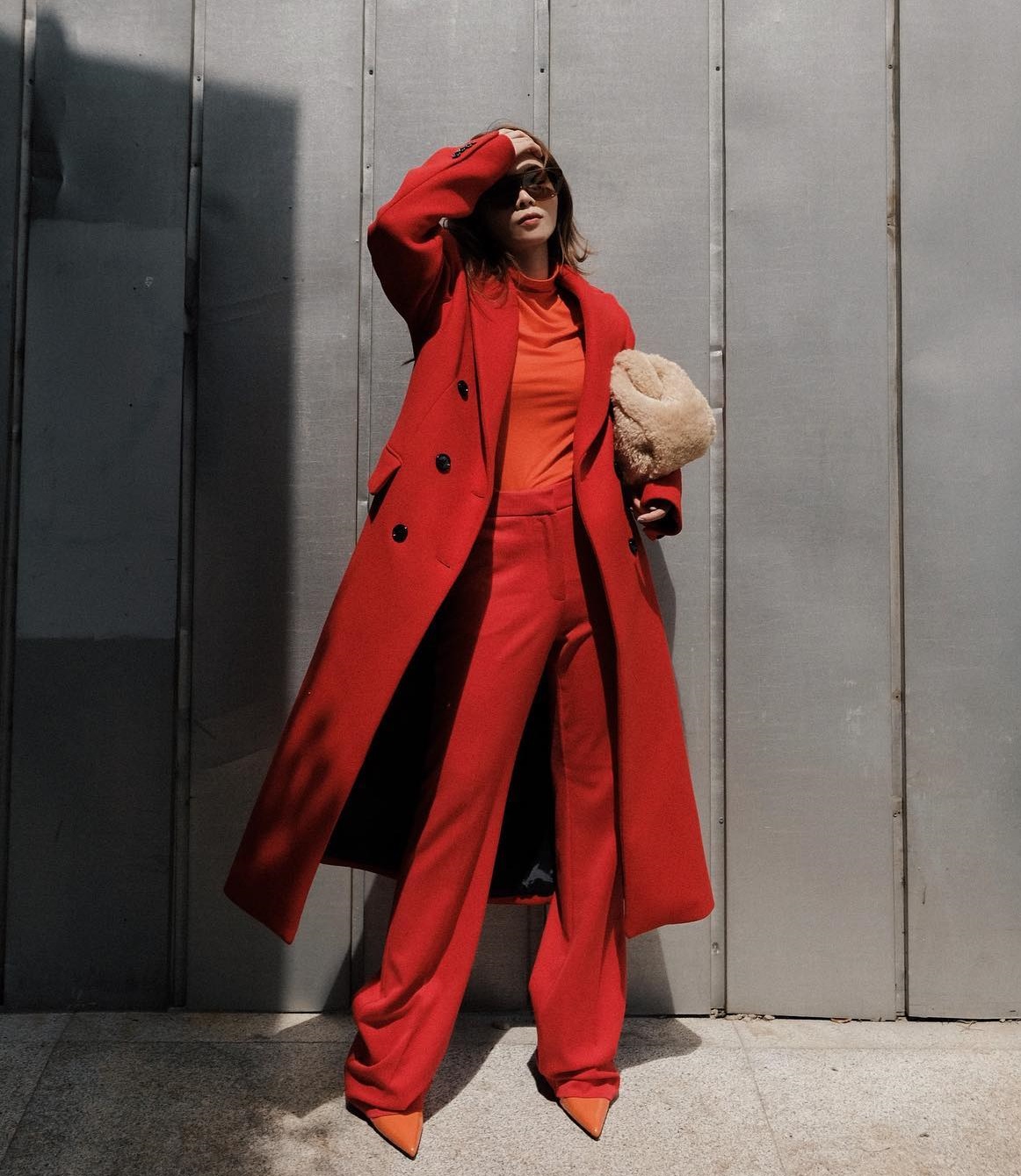 Dù diện cả một set đồ mang tông màu đỏ làm chủ đạo, vẻ ngoài của Yến Trang không hề tạo cảm giác rối mắt hay "sến sẩm". Trái lại, cô ghi điểm thanh lịch với các món thời trang như áo khoác dáng dài, quần âu ống suông, áo cổ lọ và giày cao gót mũi nhọn. Ý tưởng phối đồ của Yến Trang còn giúp người diện có ảnh "sống ảo" đầy hút mắt.