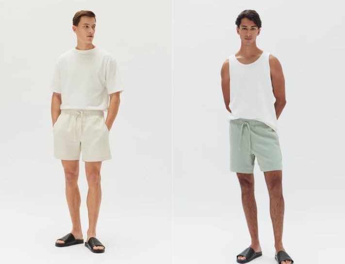 Phối quần đũi nam với áo thun: Quần short đũi nam với chất liệu chính là linen có độ co giãn và thấm hút tốt, rất phù hợp với các hoạt động vận động nhẹ nhàng. Trong đó item này phù hợp nhất khi kết hợp với áo thun, áo thun oversize. Phối thêm vài phụ kiện như kính râm hay giày để tạo điểm nhấn.