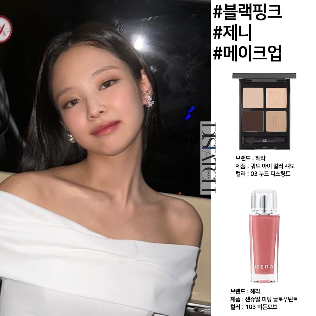 Layout thanh lịch của Jennie tại Quốc yến Hoàng gia Anh chính là "văn mẫu" đích thực dành cho các cô nàng muốn thử trang điểm tone nude. Phấn mắt được cô sử dụng là Hera Quad Eye Color Shadow (bảng 03 Nude Distinct) kết hợp cùng son Hera Sensual Fitting Glow Tint (màu 103 Hidden Mauve), Jennie quả thực vô cùng có tâm khi luôn cố gắng quảng bá sản phẩm mình làm Đại sứ.