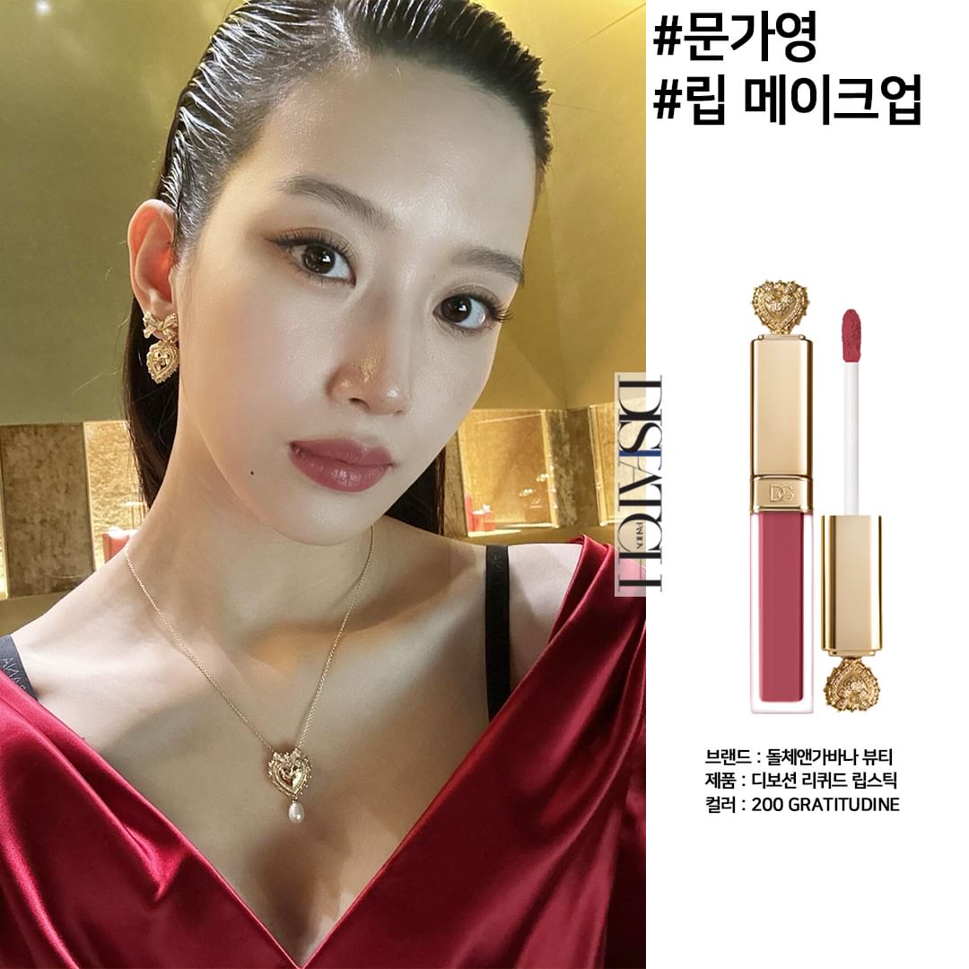 Những cô nàng cá tính, muốn đón Tết này với một màu son hồng đỏ đất sang trọng thì hãy thử ngay Dolce&Gabbana Rossetto Liquido In Mousse màu 200 Gratitudine như "nữ thần thế hệ mới" Moon Ga Young nhé.