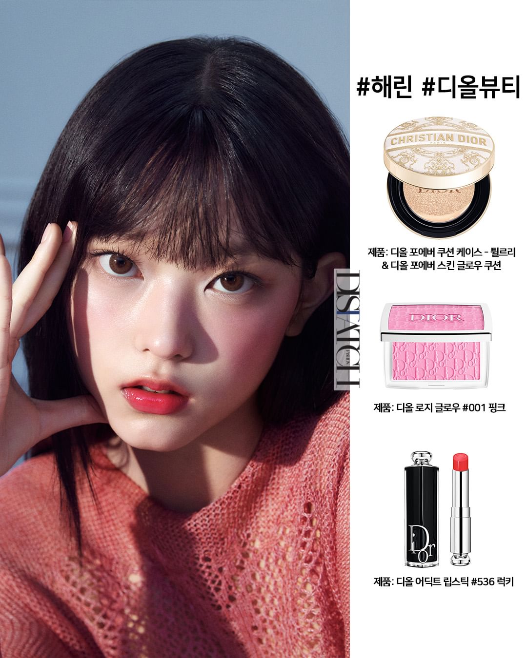 Để học theo layout makeup đậm chất gái Nhật của Haerin (NewJeans) cho năm mới này, các nàng cần "mở ví xuống tiền" sắm ngay 3 key items từ Dior như cushion Forever Skin Glow, má hồng Backstage Rosy Glow cùng son Dior Addict màu 536 hồng san hô nổi tiếng.