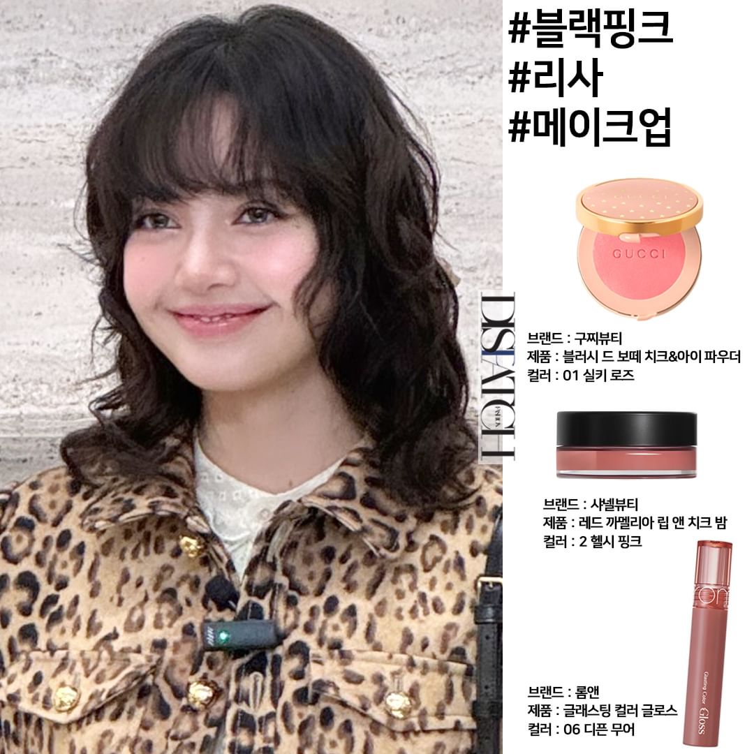 Với những nàng yêu tone hồng, đừng bỏ qua phong cách trang điểm cực đáng yêu mà Lisa đã diện tại sự kiện Celine ở Thái Lan vừa rồi. Với má hồng, Lisa sử dụng Gucci Blush De Beaté (màu 01 Silky Rose). Còn đôi môi ửng hồng căng mọng của cô nàng là sự kết hợp của son dưỡng Chanel N°1 De Lip And Cheek Balm (màu 2 - Healthy Pink) đánh nhẹ làm nền và son Romand Glasting Water Gloss (màu 06 Deepen Moor) ở lòng môi tạo hiệu ứng.