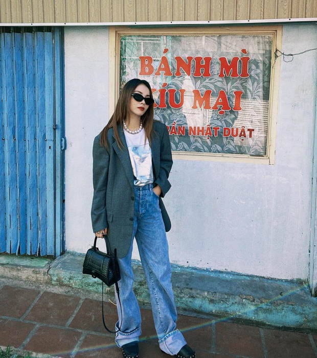 Thêm một gợi ý trang phục lý tưởng cho những chuyến du lịch ở nơi có thời tiết mát mẻ, đó là công thức áo thun + quần jeans + blazer. Bộ trang phục gây ấn tượng ở sự phóng khoáng, bụi bặm. Dẫu vậy, set đồ vẫn phảng phất nét nữ tính và thanh lịch nhờ các món phụ kiện như vòng cổ ngọc trai, túi xách nhỏ nhắn.