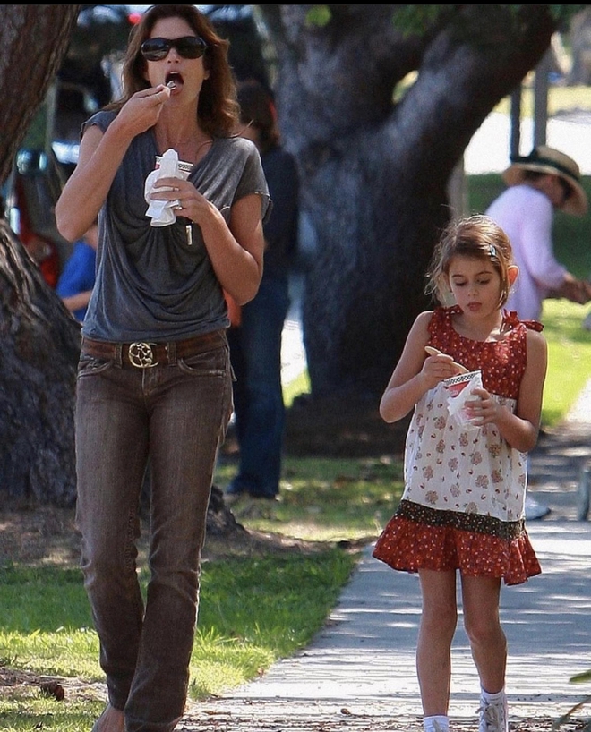 Đặc biệt, ái nữ của Cindy Crawford, Kaia Gerber hiện đang là một trong những gương mặt gen Z nổi bật nhất của làng mốt thế giới. Cô kế thừa ngũ quan sắc sảo, hài hòa của mẹ với đôi mắt sâu hút hồn cùng đôi môi cong gợi cảm, trông y hệt siêu mẫu huyền thoại hồi trẻ. Chân dài sinh năm 2001 nhanh chóng thể hiện được tài năng và khí chất của một người mẫu, liên tục nỗ lực không ngừng nghỉ tại các sàn diễn và chiến dịch quảng cáo để thoát khỏi cái bóng của mẹ cô.
