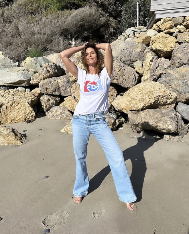 Ở độ tuổi U60, Cindy Crawford vẫn khiến người hâm mộ phải trầm trồ và ghen tỵ trước sắc vóc chuẩn chỉnh của mình. Đúng với câu nói “gừng càng già càng cay", bà vẫn duy trì được vẻ trẻ trung, rạng ngời với làn da nâu bóng khoẻ, căng mịn. Cựu siêu mẫu còn gây chú ý bởi phong độ thời trang vô cùng trendy, thời thượng và trẻ trung, chỉ toàn từ những món đồ dễ phối như quần jeans, sơ mi trơn, blazer…