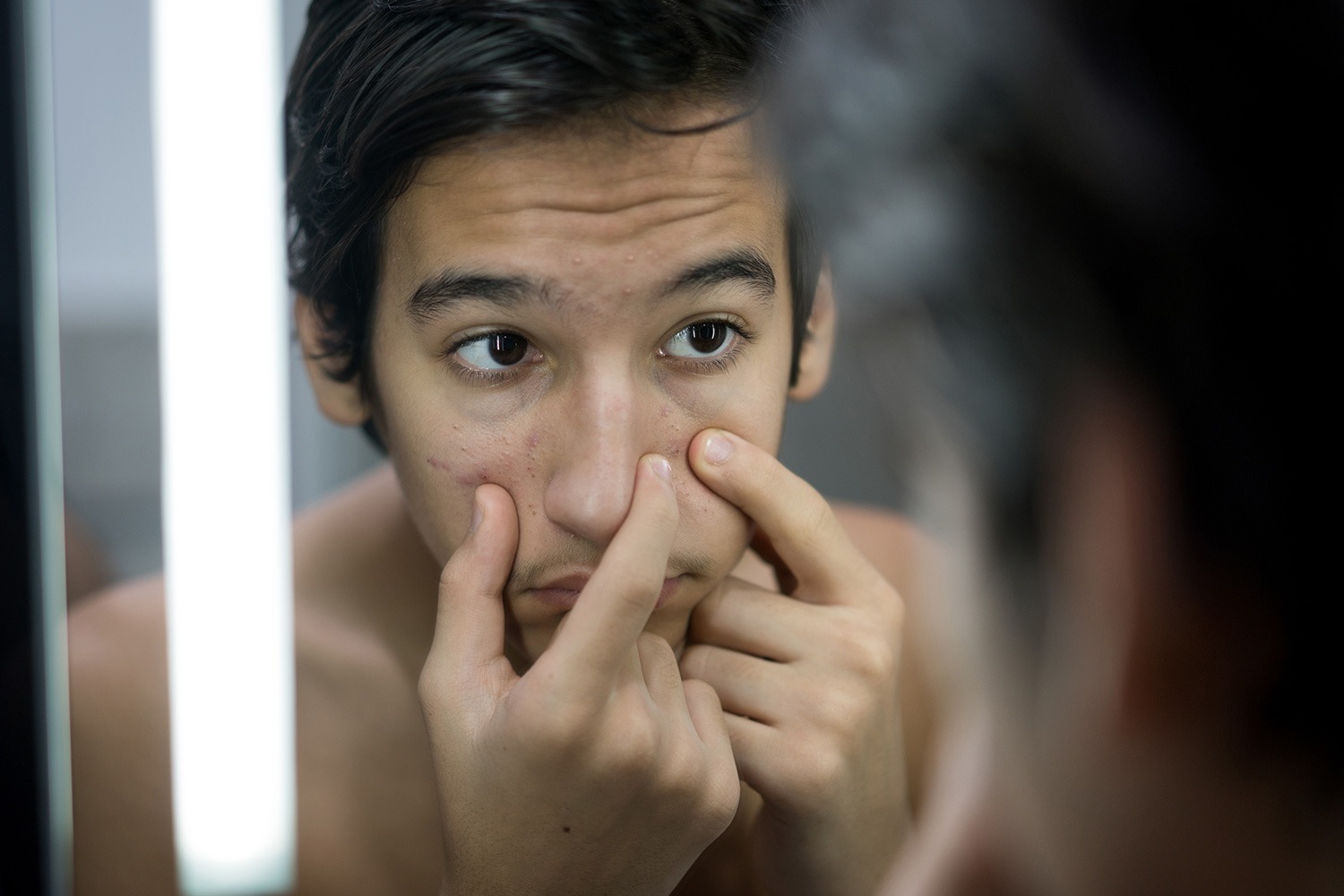 – Đầu tiên, bạn không nên cố nặn mụn. Việc làm này sẽ khiến tình trạng thêm trầm trọng.