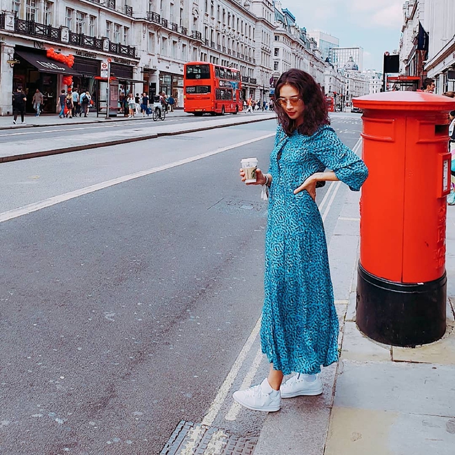Váy liền nhấn eo sẽ giúp tôn dáng tối ưu ngay cả khi Ngô Thanh Vân đi những mẫu giày bệt như sneaker trắng hay sandal. Các set váy liền nhấn eo và giày bệt của Ngô Thanh Vân là những gợi ý diện đồ lý tưởng cho chuyến du lịch mùa hè.
