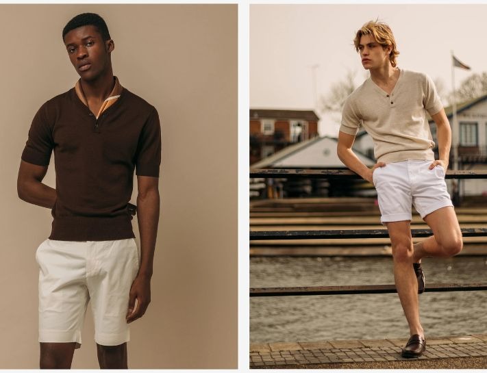 Đây là cách phối đồ đơn giản và dễ mặc nhất cho mọi chàng trai, đặt biệt là những người trẻ tuổi. Bạn có thể chọn áo Henley tay ngắn hoặc tay dài tùy theo sở thích. Quần short có thể là quần short kaki, quần short jean, hoặc quần short vải. Outfit này nên sử dụng khi đi chơi, đi dạo hoặc đi du lịch sẽ phù hợp nhất, mang lại sự thoải mái và dễ chịu tuyệt đối, thêm một số phụ kiện như giày, dép hoặc balo, túi xách phù hợp,...