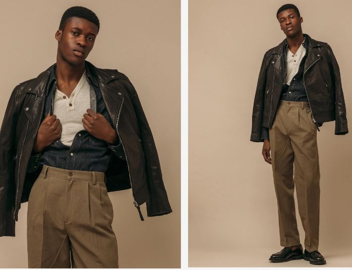 Khi nhắc tới áo khoác da, người ta sẽ nhớ ngay đến một item thể hiện sự bụi bặm, phóng khoáng và có chút phong trần. Do đó khi kết hợp với áo Henley sẽ tạo nên cảm giác thoải mái và chuẩn men hơn. Do đó nếu phối 2 item này, bạn nên mix với một chiếc quần jean phù hợp để tăng sự trẻ trung và lịch thiệp.