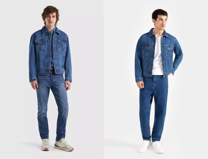 Denim on denim: Là cách phối đồ sử dụng áo denim jacket phối chung với quần jeans đơn giản hoặc quần jeans rách gối. Phù hợp nhất với những chàng trai yêu thích sự thoải mái, cá tính và độc đáo, outfit này nên phối chung với các phụ kiện như trang sức, giày sneaker. Outfit không kén dáng hay độ tuổi tuy nhiên thích hợp nhất là sử dụng cho người trẻ.