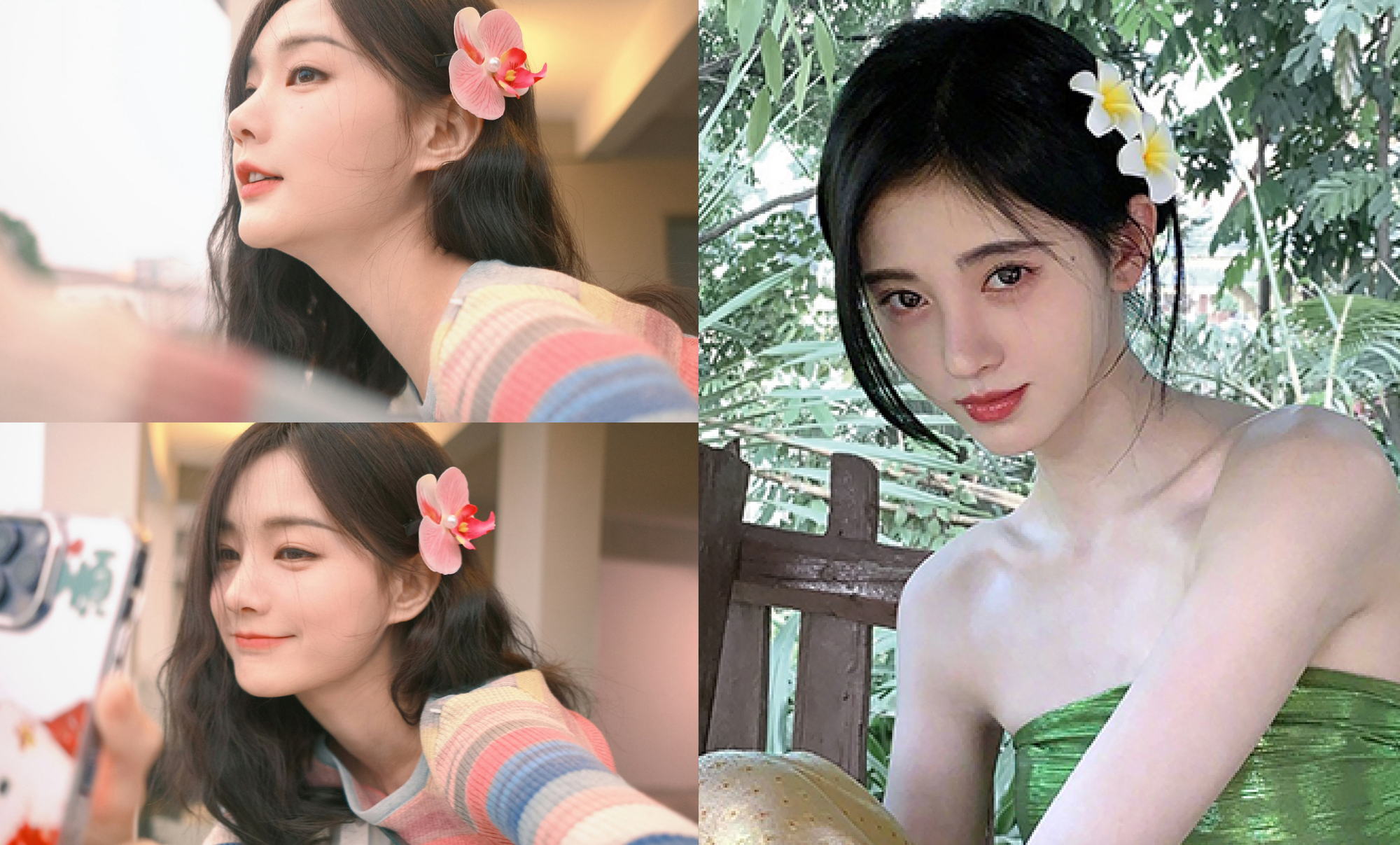 Nhiều ngôi sao Hoa ngữ đình đám đểu sử dụng kẹp bông hoa như một phụ kiện làm đẹp "bất li thân". Trong chuyến đi du lịch Thái Lan, Cúc Tinh Y chỉ để mặt mộc tinh khôi nhưng luôn cài kẹp hoa sứ khiến dân tình không tiếc lời khen ngợi. Còn Lý Nhất Đồng mới đây gây bão hotsearch Weibo bởi visual trong trẻo khi cài cặp tóc lan hồ điệp.