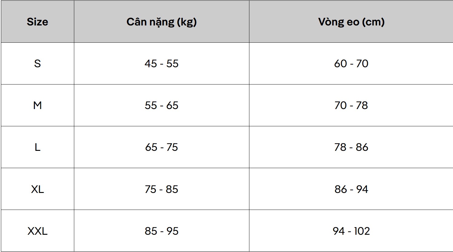 -Size S: Phù hợp với nam giới có vòng eo từ 60 đến 70cm.