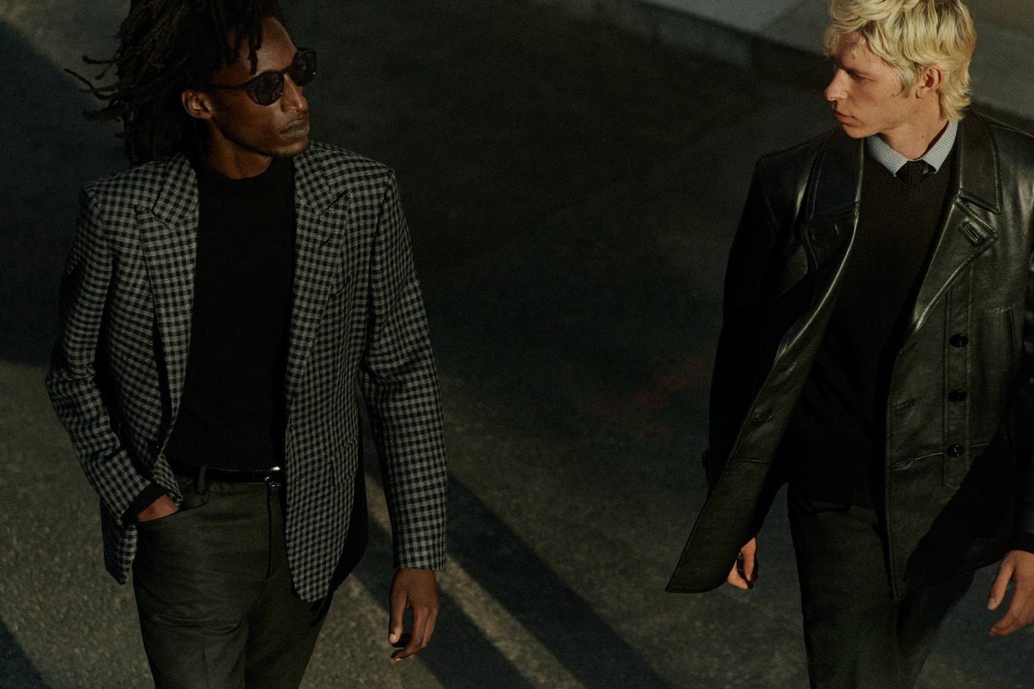 36 món đồ read to wear, ba đôi giày, ba chiếc cà vạt và một chiếc khăn quàng cổ, được dẫn dắt bởi phong cách mang tính biểu tượng của Tom Ford, được xác định bằng ngôn ngữ thiết kế đã được thiết lập của nhà thiết kế. Nổi bật bao gồm áo khoác da và áo khoác lông cừu màu đen, áo khoác bay cổ lông cừu, áo khoác tuxedo xoáy ảo giác, áo khoác kẻ sọc, bộ đồ thiết kế vi mô màu đen và trắng và áo dệt kim cổ cuộn bằng lụa mohair.