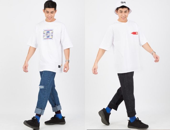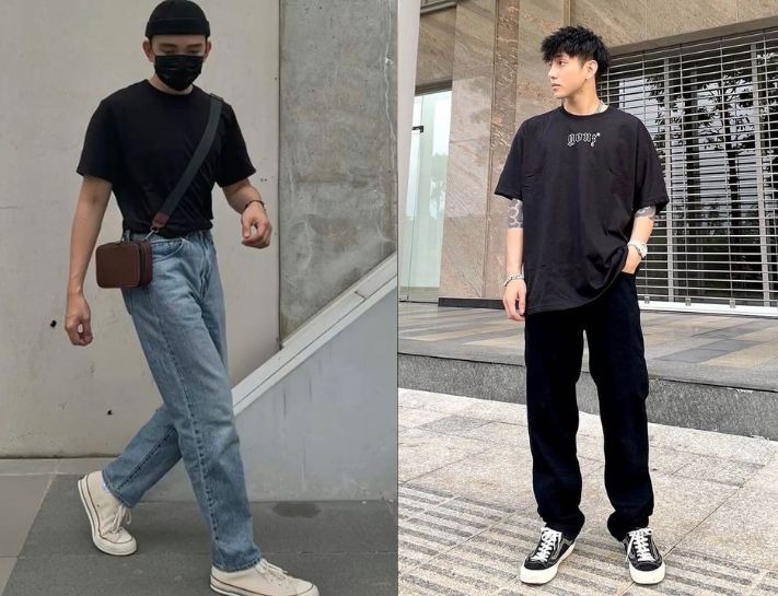 Trong mùa hè, chọn áo phông trắng kết hợp với quần ống suông tạo nên một cảm giác rất trẻ trung và phóng khoáng. Áo trắng làm nổi bật vóc dáng trong khi đó quần ống suông giúp tạo cảm giác tăng chiều cao. Hãy phối hai item này cùng giày sneakers để có ngay phong cách năng động và khỏe khoắn nhé. Đây cũng là cách phối đồ nam mùa hè 2024 được nhiều người yêu thích.