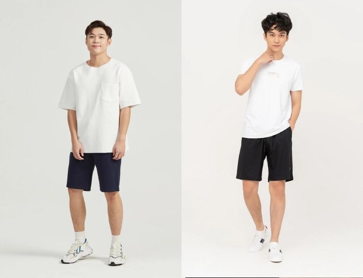 Vào những ngày nắng oi bức, áo phông trắng kết hợp với quần đùi là một sự lựa chọn hoàn hảo. Hai mẫu trang phục này phối cùng mũ snapback và giày thể thao sẽ giúp cho bạn trông trẻ trung và sành điệu hơn. Bạn có thể lựa chọn mẫu áo phông trắng kèm với họa tiết đơn giản để tránh sự đơn điệu.