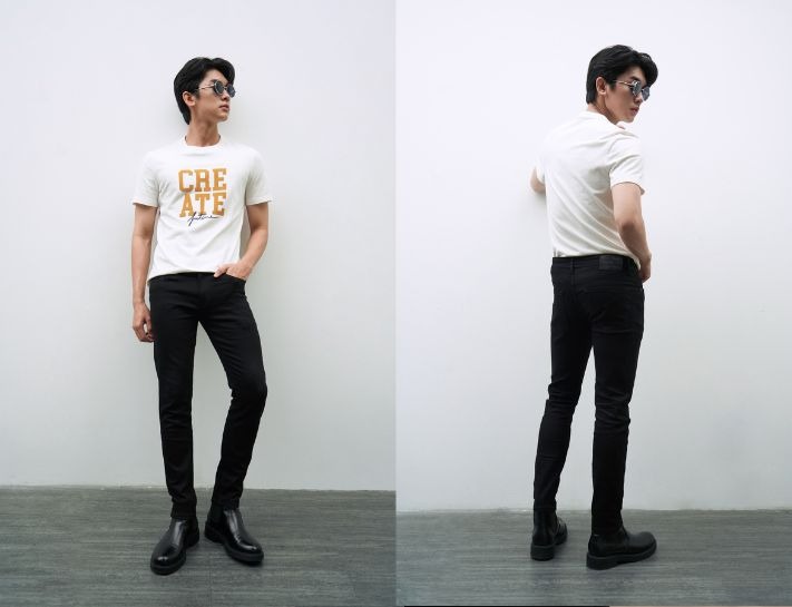 Kết hợp giữa áo phông trắng và quần skinny jeans đen là cách phối đồ áp dụng nguyên tắc màu sắc tương phản. Quần skinny giúp tạo ra ấn tượng đôi chân dài hơn, áo phông trắng thả suông hay sơ vin đều rất phù hợp với outfit này. Bạn có thể mix thêm một đôi giày và một chiếc thắt lưng để bộ đồ thêm phần chỉn chu.