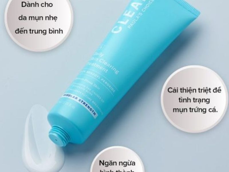 Paula’s Choice Clear Regular Strength Daily Skin Clearing Treatment With 2.5% Benzoyl Peroxide có chứa nhiều thành phần làm dịu da, giảm kích ứng. Khi sử dụng mụn sẽ giảm nhanh chóng, ngừa mụn mới xuất hiện.