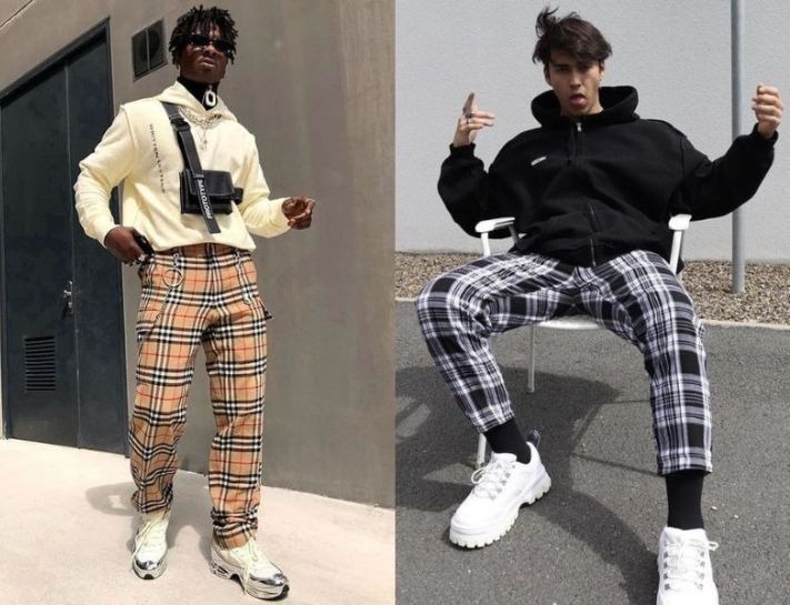 Phối áo hoodie với quần caro nam ống rộng